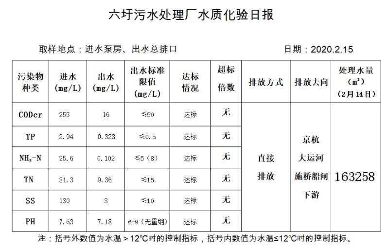 六圩污水处理厂水质化验日报(2020.2.15)