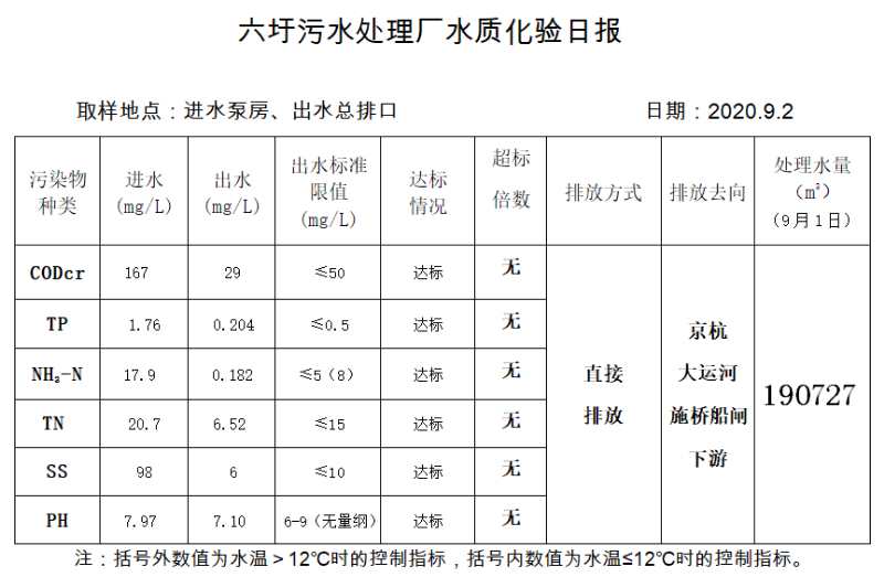 六圩污水处理厂水质化验日报(2020.9.2)