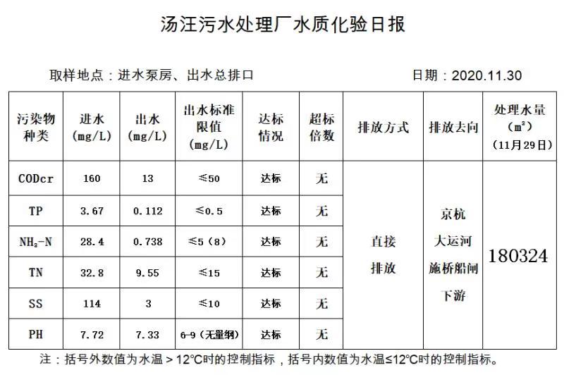 汤汪污水处理厂水质化验日报(2020.11.30)