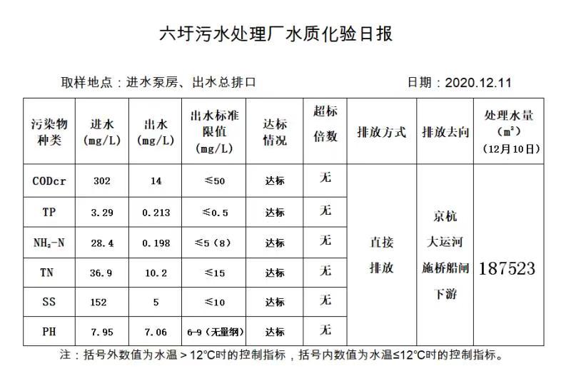 六圩污水处理厂水质化验日报(2020.12.11)