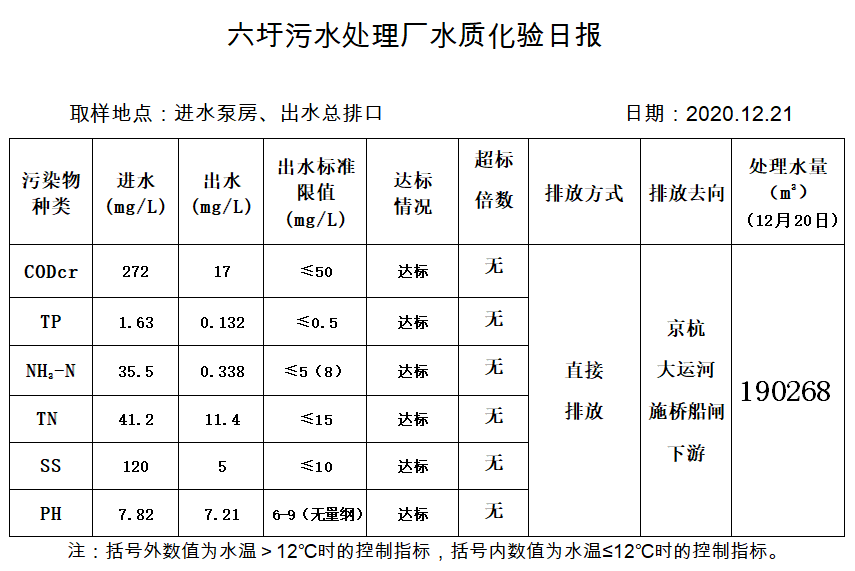 六圩污水处理厂水质化验日报(2020.12.21)
