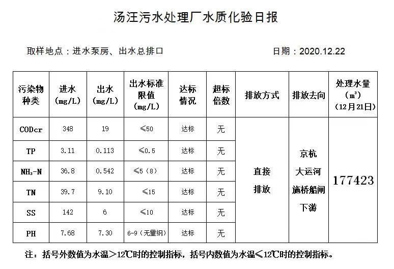 汤汪污水处理厂水质化验日报(2020.12.22)