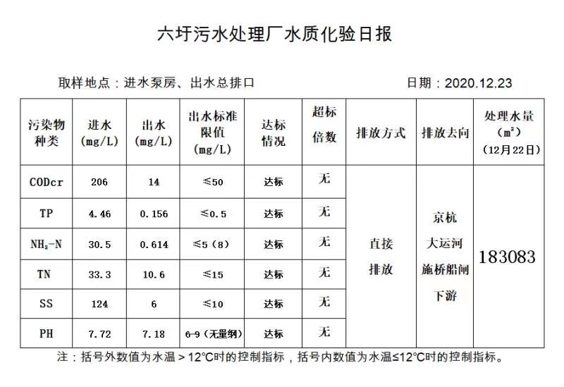 六圩污水处理厂水质化验日报(2020.12.23)