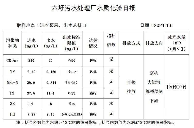六圩污水处理厂水质化验日报(2021.1.6)