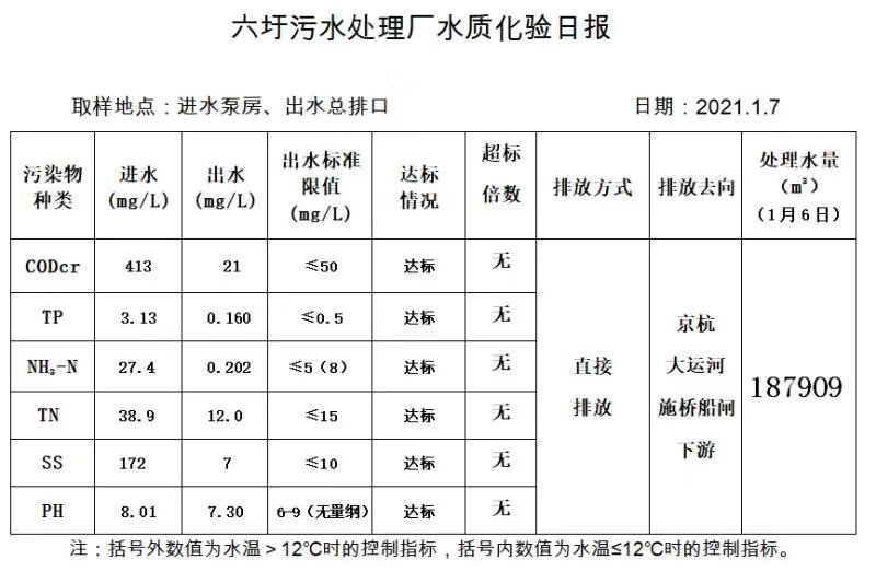 六圩污水处理厂水质化验日报(2021.1.7)