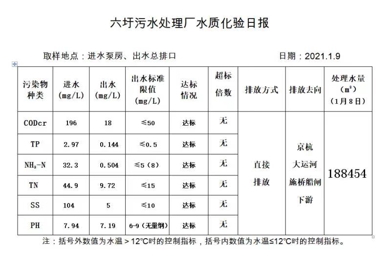 六圩污水处理厂水质化验日报(2021.1.9)