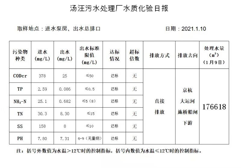 汤汪污水处理厂水质化验日报(2021.1.10)