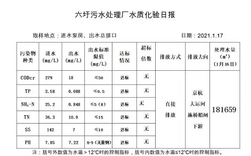 六圩污水处理厂水质化验日报(2021.1.17)