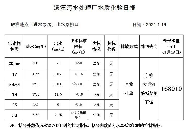 汤汪污水处理厂水质化验日报(2021.1.19)