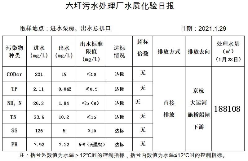 六圩污水处理厂水质化验日报(2021.1.29)