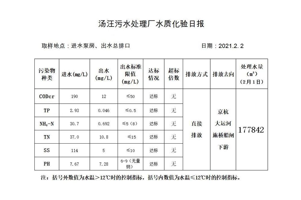 汤汪污水处理厂水质化验日报(2021.2.2)