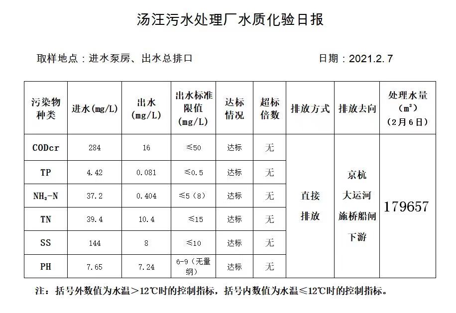 汤汪污水处理厂水质化验日报(2021.2.7)