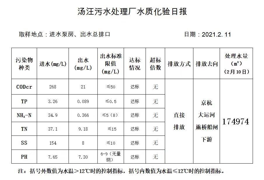汤汪污水处理厂水质化验日报(2021.2.11)