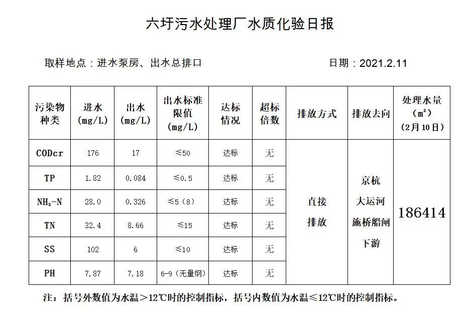 六圩污水处理厂水质化验日报(2021.2.11)