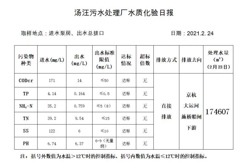 汤汪污水处理厂水质化验日报(2021.2.24)