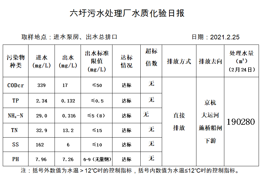 六圩污水处理厂水质化验日报(2021.2.25)