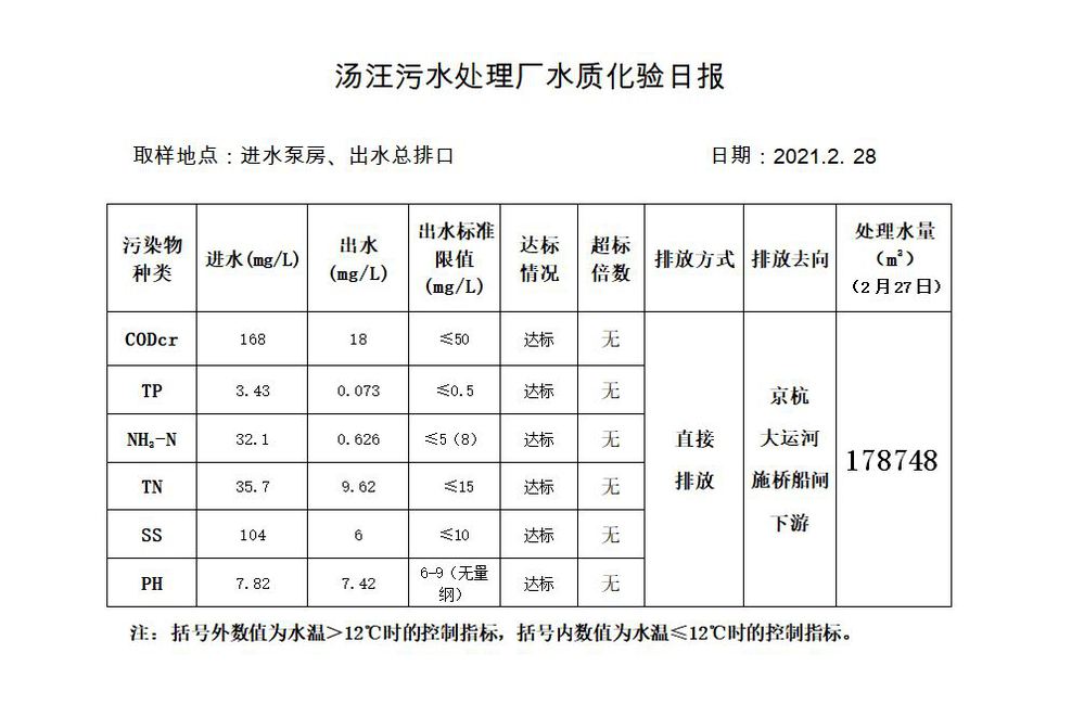 汤汪污水处理厂水质化验日报(2021.2.28)