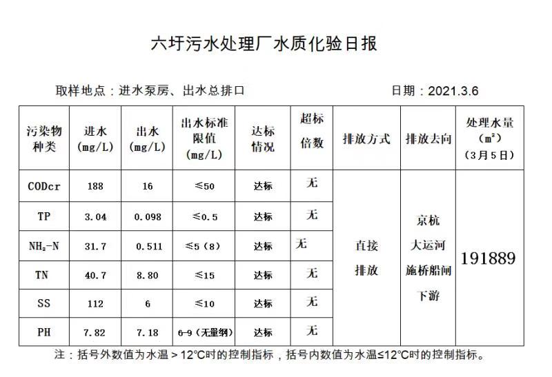 六圩污水处理厂水质化验日报(2021.3.6)