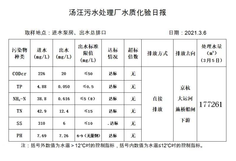 汤汪污水处理厂水质化验日报(2021.3.6)
