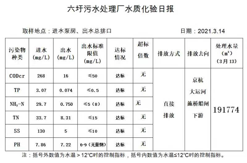 六圩污水处理厂水质化验日报(2021.3.14)
