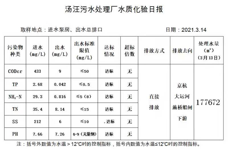 汤汪污水处理厂水质化验日报(2021.3.14)