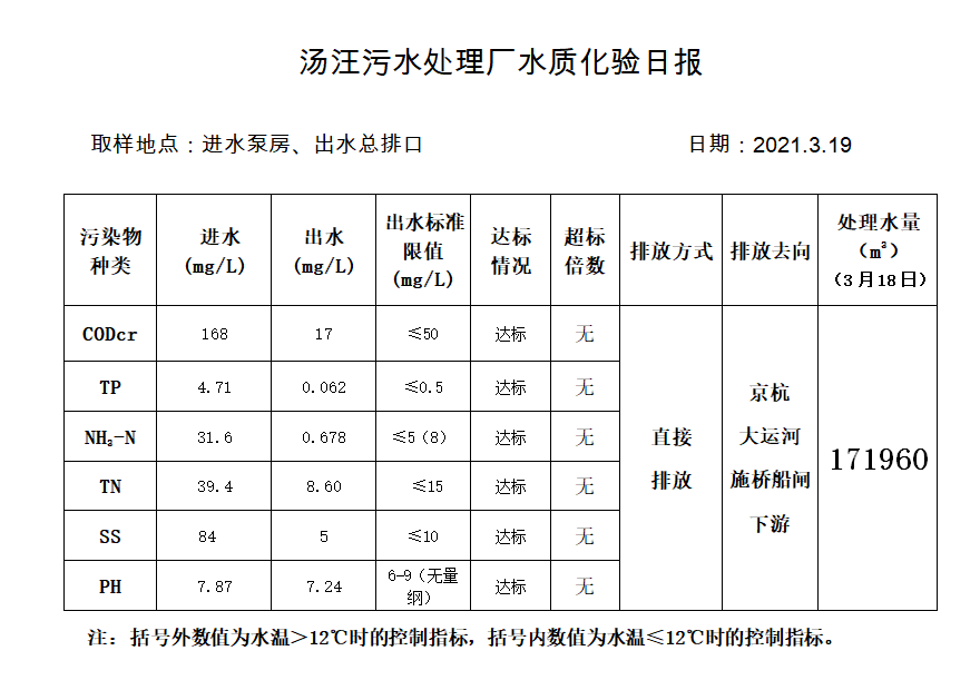 汤汪污水处理厂水质化验日报(2021.3.19)