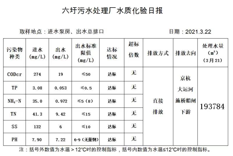 六圩污水处理厂水质化验日报(2021.3.22)