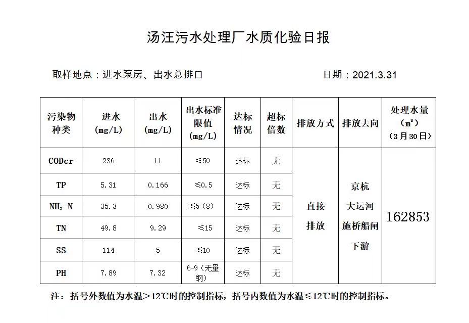 汤汪污水处理厂水质化验日报(2021.3.31)