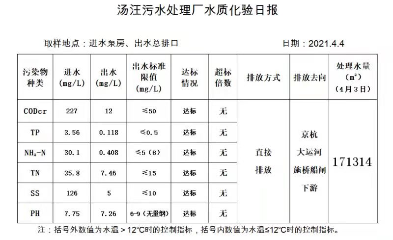 汤汪污水处理厂水质化验日报(2021.4.4)