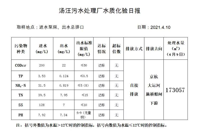汤汪污水处理厂水质化验日报(2021.4.10)