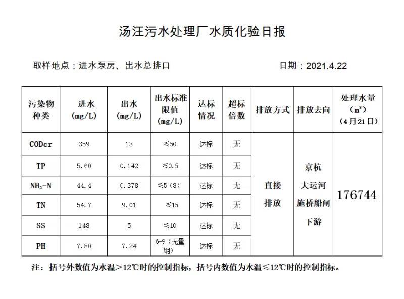 汤汪污水处理厂水质化验日报(2021.4.22)