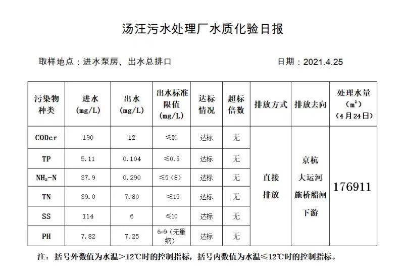汤汪污水处理厂水质化验日报(2021.4.25)