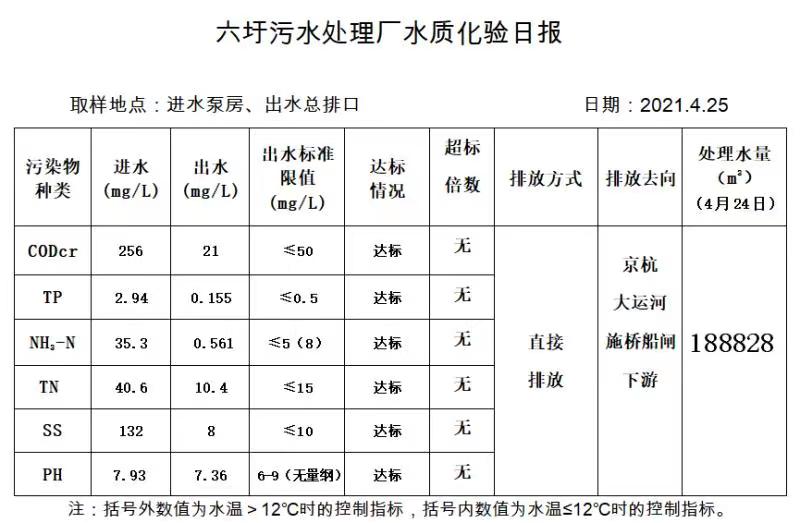 六圩污水处理厂水质化验日报(2021.4.25)