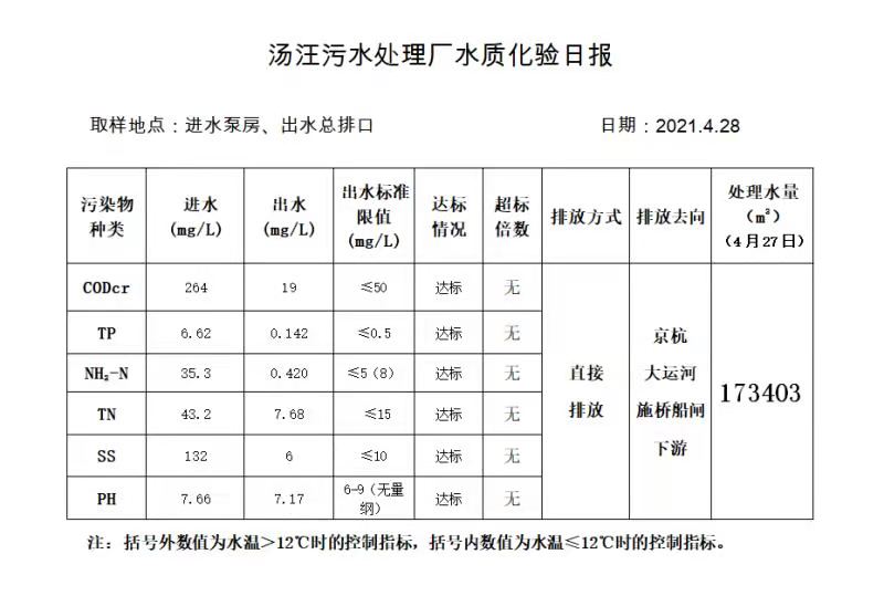 汤汪污水处理厂水质化验日报(2021.4.28)