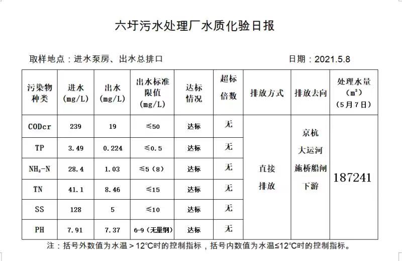 六圩污水处理厂水质化验日报(2021.5.8)