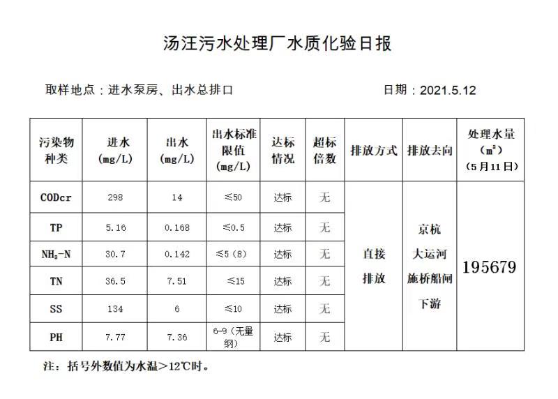 汤汪污水处理厂水质化验日报(2021.5.12)