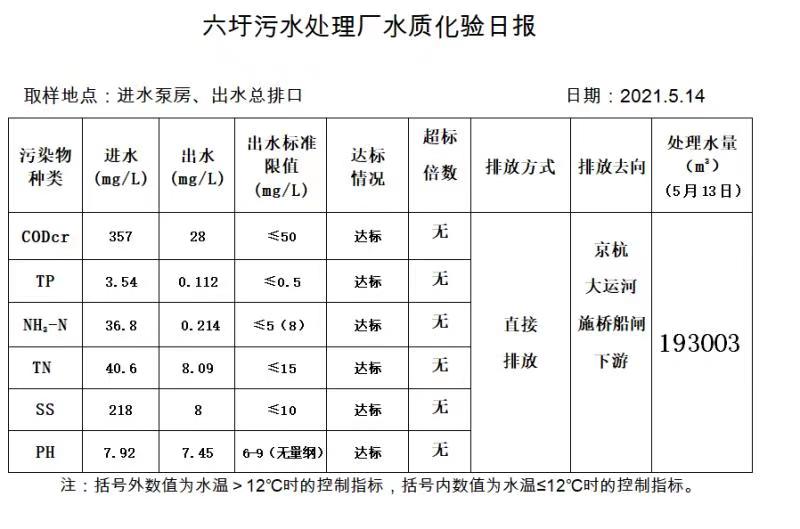 六圩污水处理厂水质化验日报(2021.5.14)