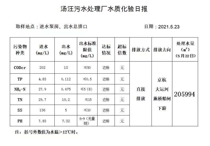 汤汪污水处理厂水质化验日报(2021.5.23)