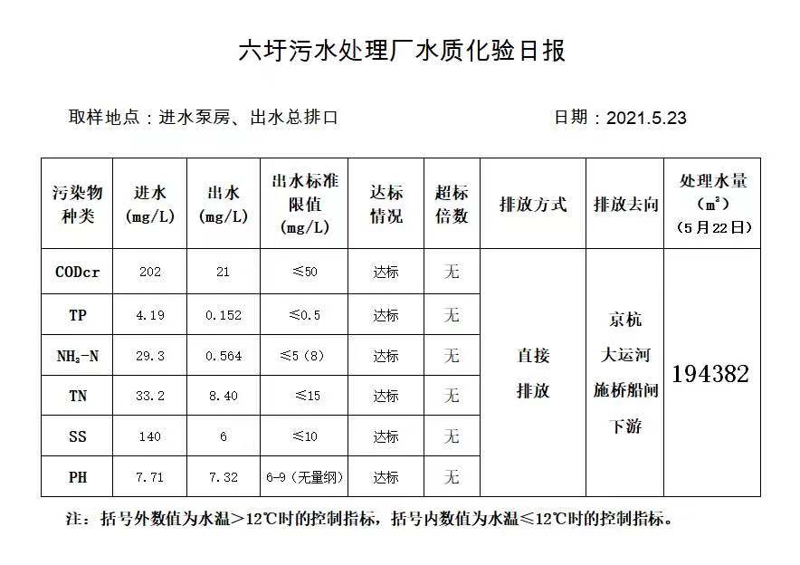 六圩污水处理厂水质化验日报(2021.5.23)