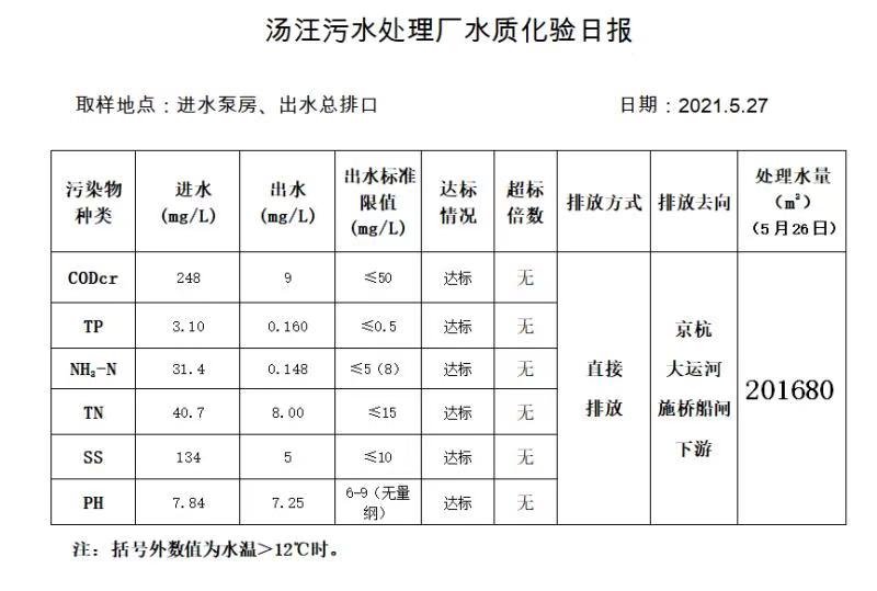 汤汪污水处理厂水质化验日报(2021.5.27)