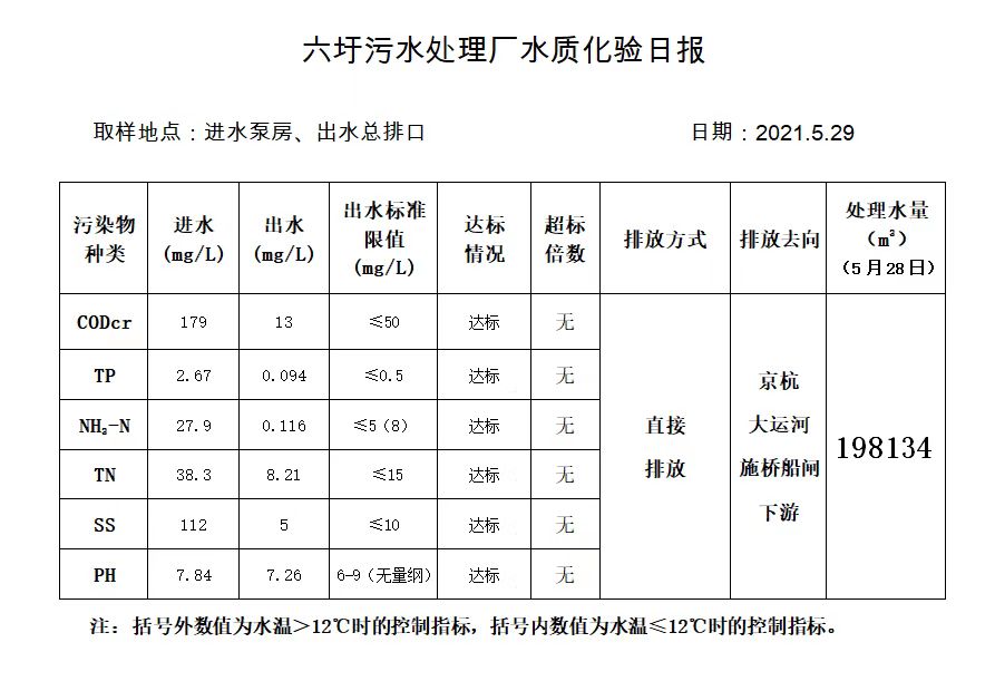 六圩污水处理厂水质化验日报(2021.5.29)