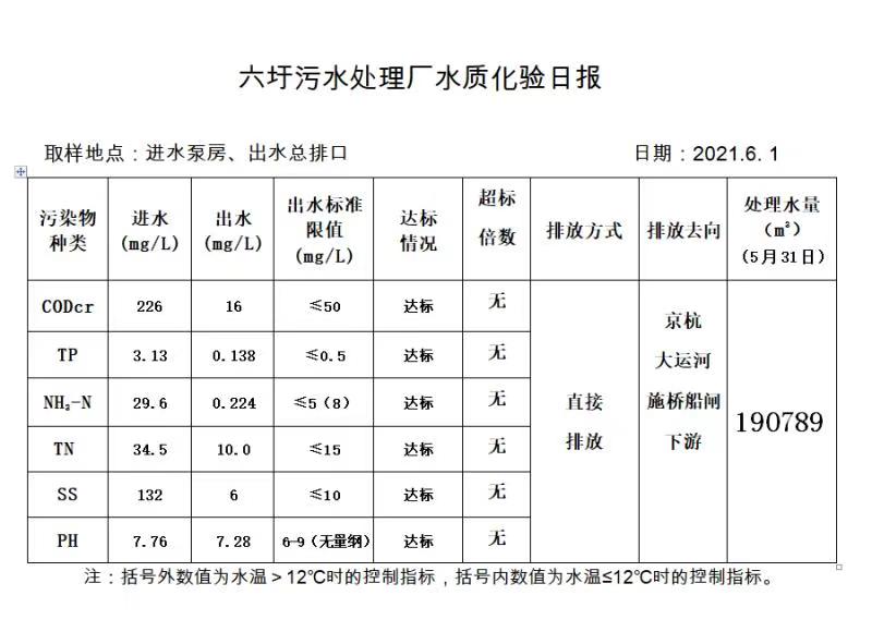 六圩污水处理厂水质化验日报(2021.6.1)