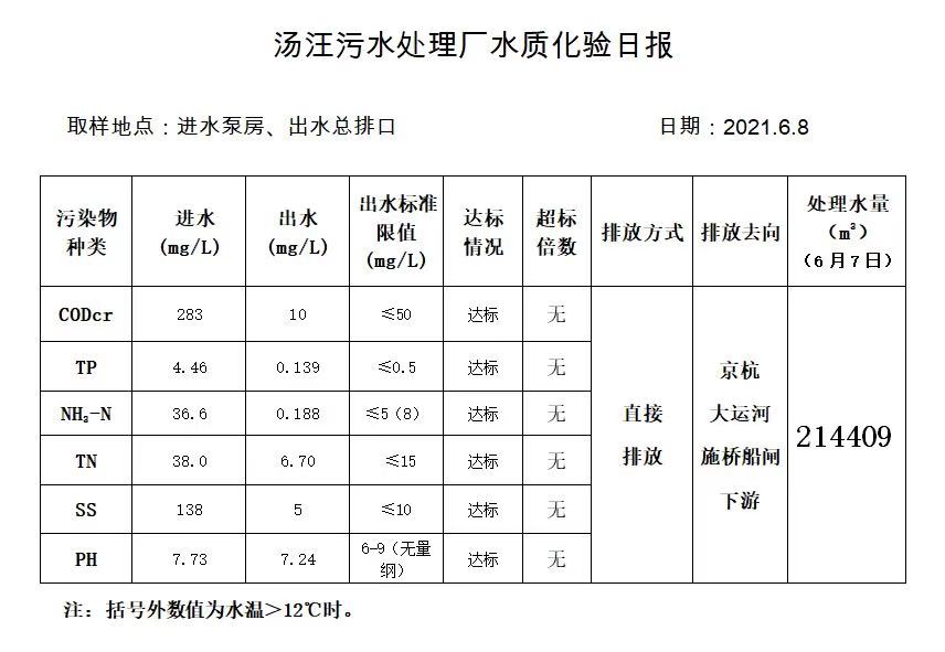 汤汪污水处理厂水质化验日报(2021.6.8)