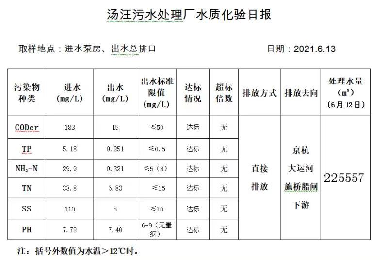 汤汪污水处理厂水质化验日报(2021.6.13)