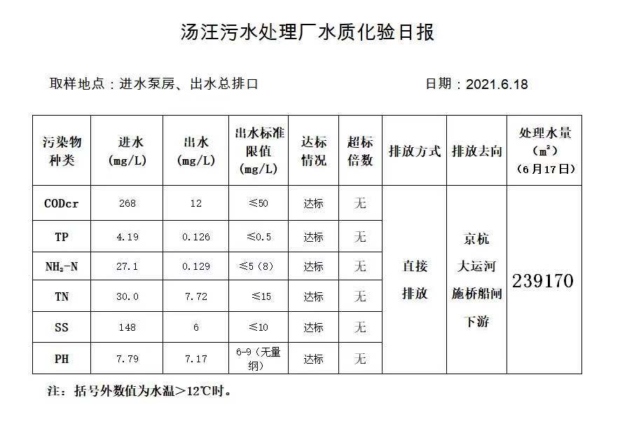 汤汪污水处理厂水质化验日报(2021.6.18)