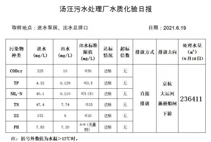 汤汪污水处理厂水质化验日报(2021.6.19)