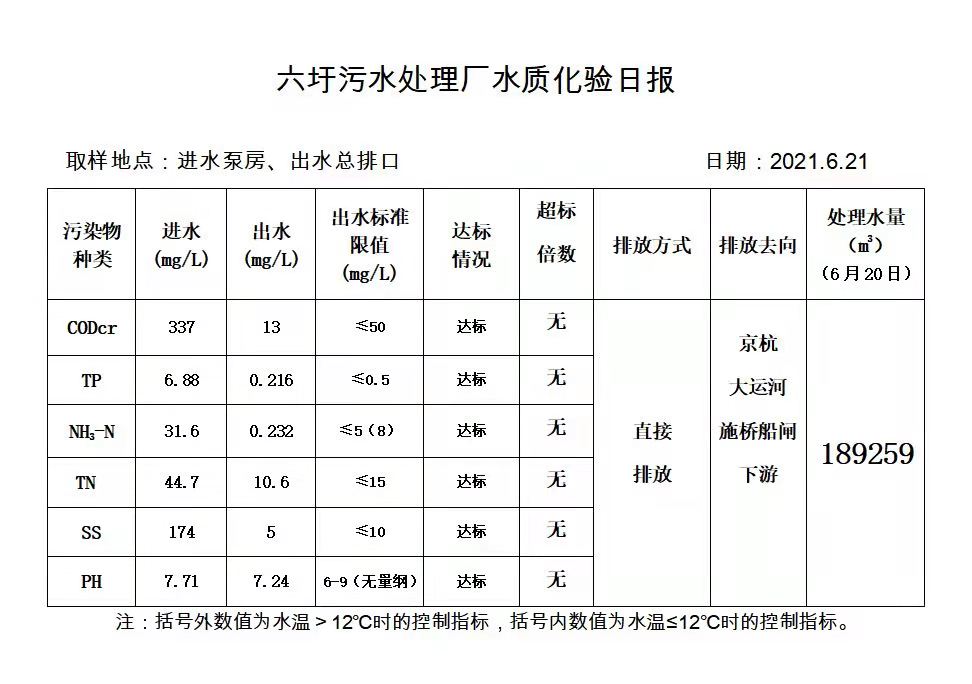 六圩污水处理厂水质化验日报(2021.6.21)