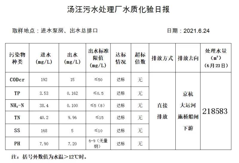 汤汪污水处理厂水质化验日报(2021.6.24)