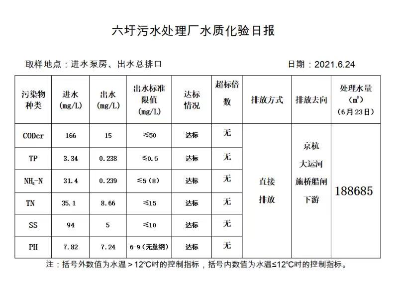 六圩污水处理厂水质化验日报(2021.6.24)