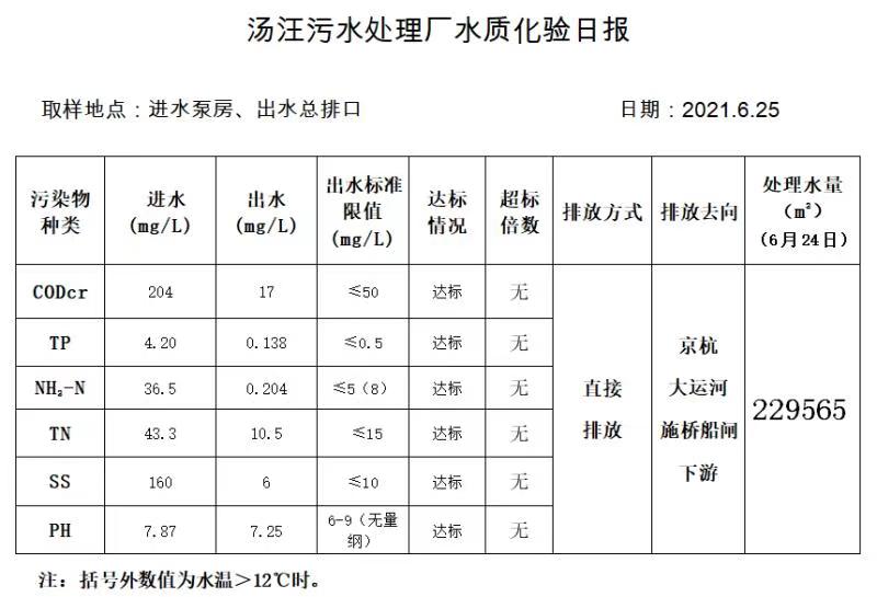 汤汪污水处理厂水质化验日报(2021.6.25)